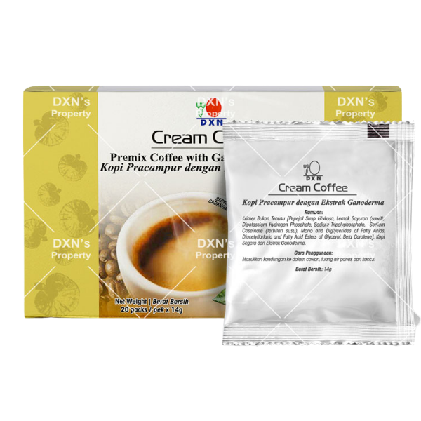 DXN Cream Coffee is a smooth and creamy instant coffee enriched with Ganoderma extract for daily wellness support. Enjoy rich taste with health benefits in every cup.